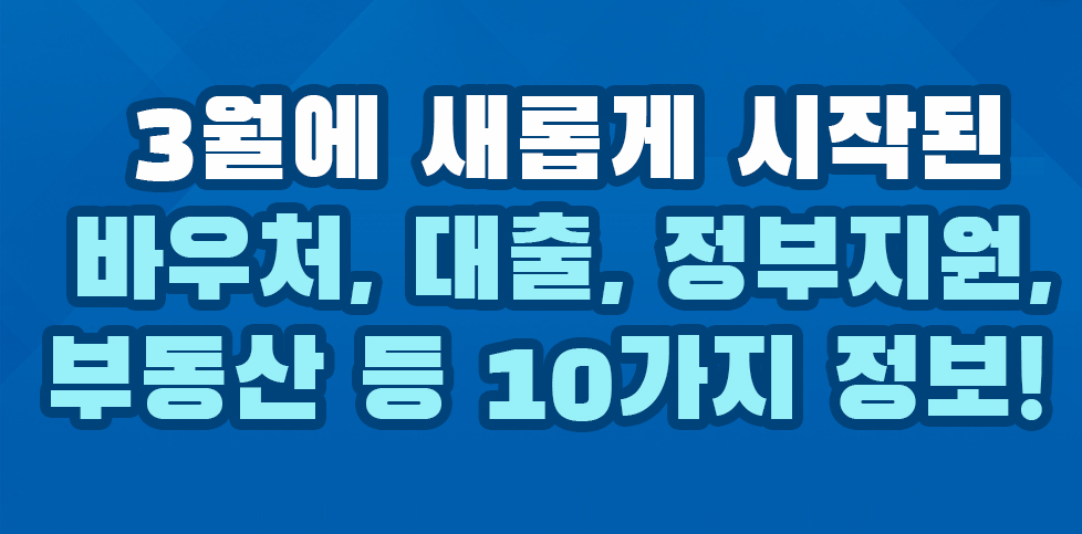 3월이면 학교를 비롯해서 공공기관에서 본격적인 업무가 시작됩니다. 그만큼 3월부터 새로 시작하거나 달라지는 정책들이 굉장히 많습니다. 오늘은 3월부터 바뀌거나 새롭게 시작하는 다양한 정책들 중에서 바우처 등 복지와 관련된 내용들하고 일상생활에서 알아두면 유용한 정보들, 그리고 집중 단속 등 조심해야 하는 내용들을 모아서 소개해 드리겠습니다.